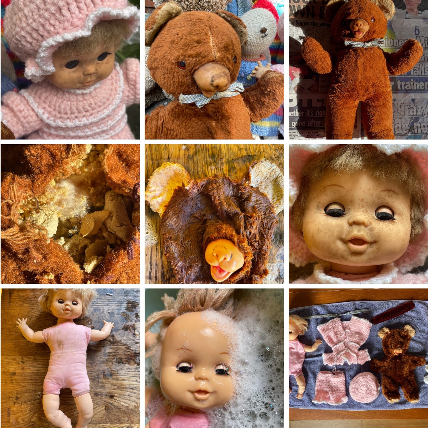 Roger had been keeping an eye on my doll and bear hospital. So, imagine my joy when I opened the package and found the doll that belonged to his mother and the bear that belonged to Marcy along with some other friends and lots of handmade doll clothes! Oh my heart! I’ve named the doll Mirabelle and the bear Marcello. They are both recovering from spa treatment and awaiting fresh fluff. Just today, all of the clothes Roger sent are in the dolly laundry. Thank you, Roger, for entrusting these friends to me! We are having very fine adventures.
