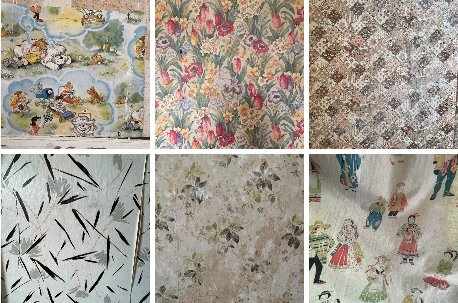 I felt moved when I saw all of these decorative traces of past lives in paper and curtains left behind. There’s a story in these remnants which we’ll never know and which no one remains to tell.