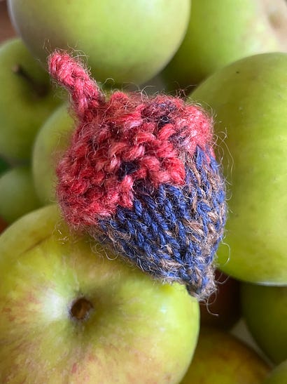 I follow a lot of knitters, wool shops, designers, shepherds, and sheep on Instagram. This acorn and her woolly friends came across my screen and I realized that I needed to knit an acorn that minute. Stop everything and make an acorn. So, that’s what I did. I also knitted the pinecone which was completely fascinating in the way it was constructed. I seriously know how to make a picot bind-off now. I really should have used fuzzier wool for my pinecone because it’s a bit too smooth. If you’d like to knit some woodland things, here is the pattern I used. I have no affiliation with the designers, I just liked the look of their things. I found the pattern to be well written and I learned some new skills, too.