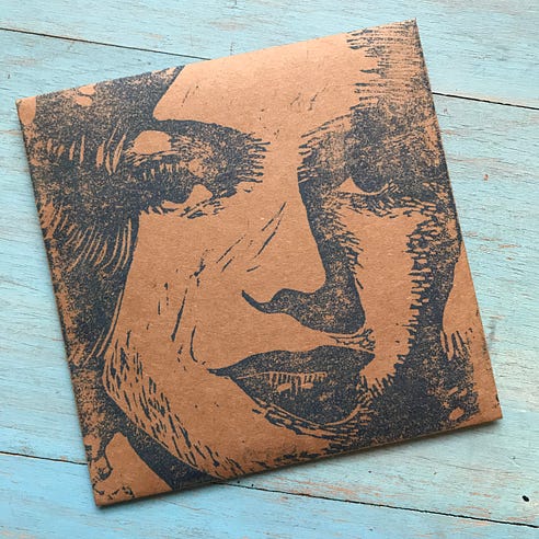 Back in 2019 when I released my Homecoming Queen CD, a fan asked me if I could create an ultimate superfan package for him because he and his daugher loved my music so much! Wow. Thank you! One of the things that I made for them was a five song EP called Pretty Girls in a Line. “Goodbye, Elvis Presley” was track five. My fan and his daughter were happy with their superfan package. I appreciated the support for my music and I finally got to use the linocuts of Elvis and Marilyn I’d made back in 2004 when I wrote this song. Marilyn made the cover of the CD envelope and Elvis adorned the lyric sheet.